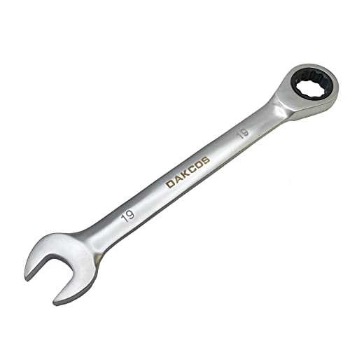 DAKCOS Chiave combinata a cricchetto 19 mm - Chiave combinata metrica a cricchetto in CR-V con finitura cromata opaca