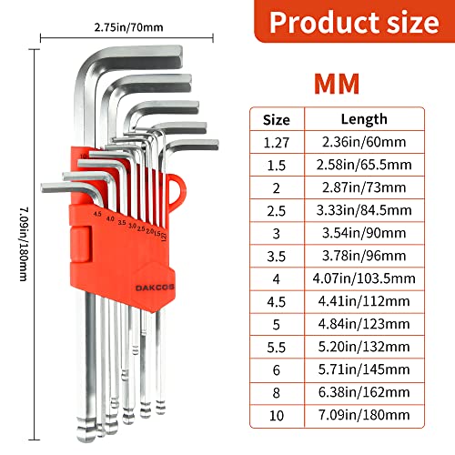 DAKCOS set di chiavi esagonali metriche da 13 pezzi, 1,27 - 10 mm, colore: argenteo