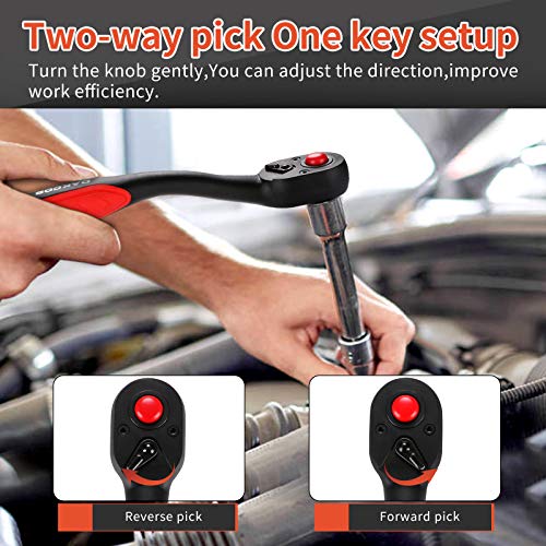 DAKCOS 1/2 "Drive Cricchetto Reversibile a 72 Denti, Cromo Vanadio Acciaio