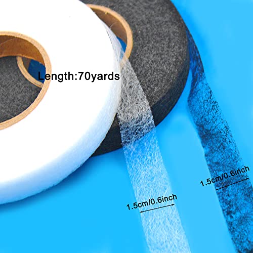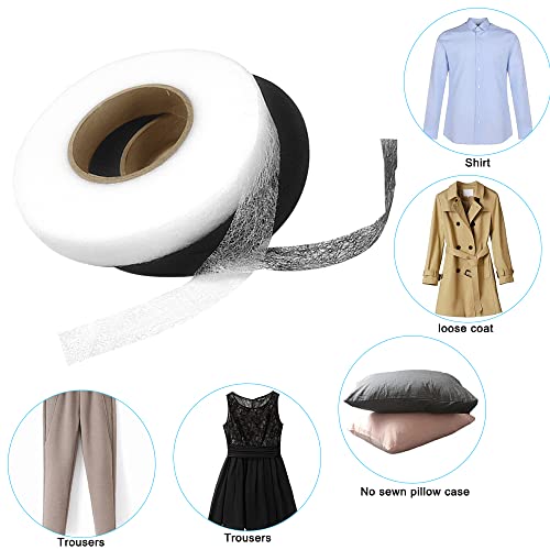 DaKuan - Nastro adesivo per fusione, 4 rotoli di nastro adesivo da stirare per incollare vestiti, jeans, pantaloni collari ciascuno lungo 70 m (nero, bianco)