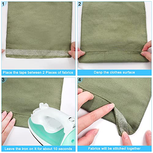 Confezione: include 4 rotoli di nastri di fusione in tessuto (bianco/nero), la larghezza del nastro in tessuto è di 1,5 cm, la lunghezza è di 70 m, ferro da stiro, biadesivo per orlare facilmente e permanentemente gli indumenti senza cucire.