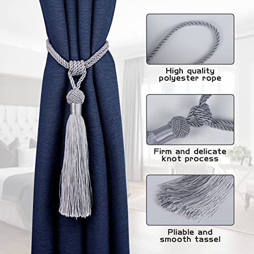 Dalababa 2 Pezzi Fermatende per Tende Corda Intrecciata di Cotone Poliestere Drappo Tieback Clip con Nappa per Tendaggi Finestra,Grigio