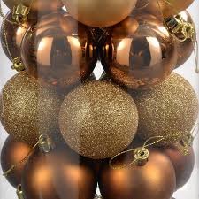 Dalbags - Confezione da Pz 16 Palline Natalizie per Decorazione Albero di Natale Dimensione 4 Cm Colore Bronzo Miste Opache Lucide Glitterate