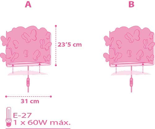 Dalber - Lampada da parete E-27, Farfalla, Multicolore, 31 x 14.5 x 23.5