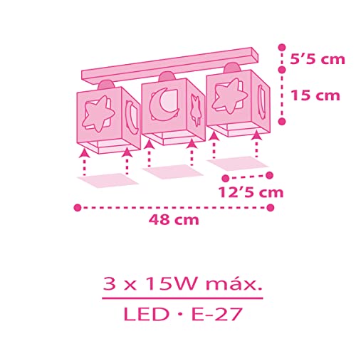 Dalber - Lampada da soffitto E-27, Chiaro di luna rosa, Multicolore, 48 x 12.5 x 20.5