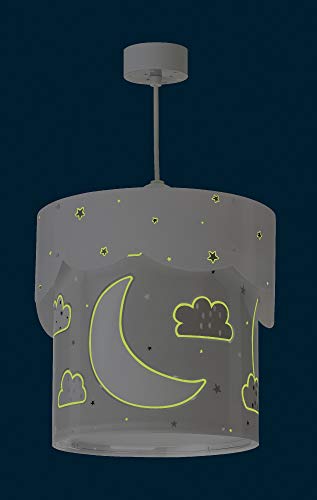 Dalber Moon - Lampada da soffitto per bambini, motivo luna e stelle, 60 W, colore: grigio