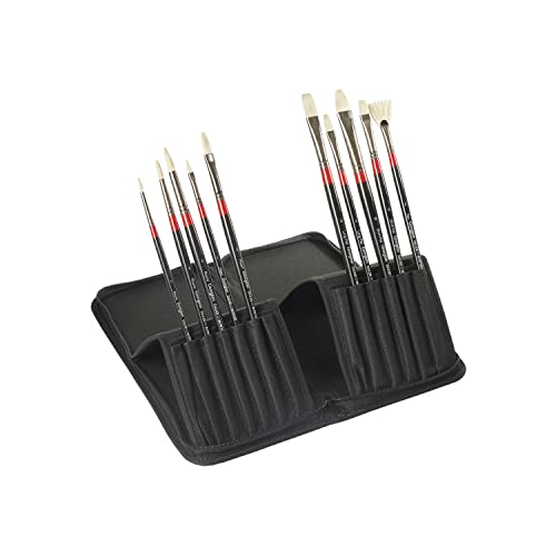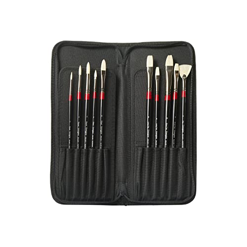 Daler Rowney- Georgian astuccio con cerniera 10 pennelli assortiti in setola bianca e martora,manico lungo per pittura a olio