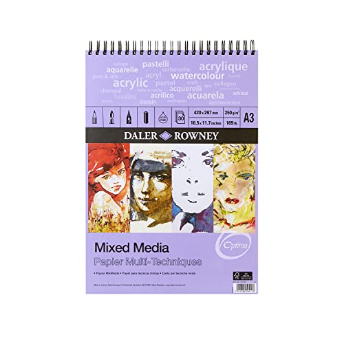 Daler Rowney- Optima blocco a spirale per disegno, formato A3, 30 fogli 250g/m, multicolore