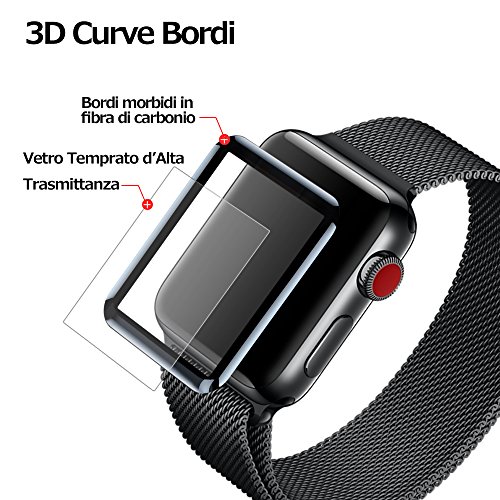Dalinch Pellicola Vetro Temperato Compatible per iwatch 42mm Serie 1/Serie 2/Serie 3, [2 Pezzi] iWatch Pellicola [3D Vetro Temperato] Anti-Bolla, Resistente ai Urti per Orologio Hermès/Nike+ Edition