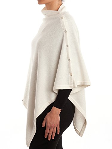 DALLE PIANE CASHMERE - Poncho con bottoni in misto cashmere - Donna, Colore: Bianco, Taglia unica
