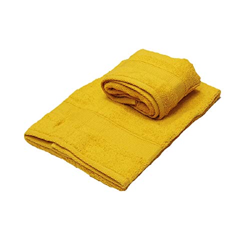 Daltex Set 1+1 Asciugamano Viso più Asciugamano ospite in Spugna Puro Cotone Pettinato da 500gr/metro Quadro, Oro