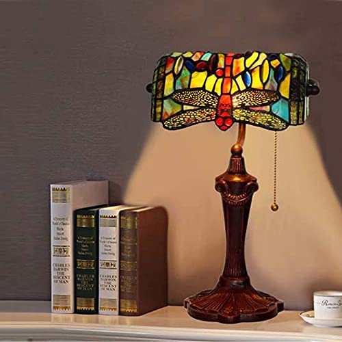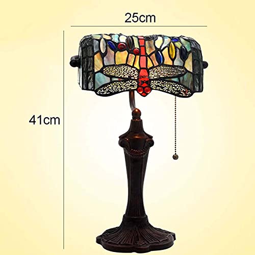 DALUXE Tiffany Style Dragonfly Banker Banker Lampada da Tavolo Retro Glass Taché Desk Lampada per Soggiorno Camera da Letto Lettura del Comodino