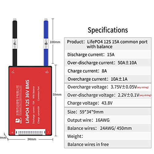 DALY BMS 12S 36V 15A LiFePO4 Batteria Modulo di Protezione PCB Scheda di Protezione con Equilibrio Cavi BMS per 18650 Batteria 36V