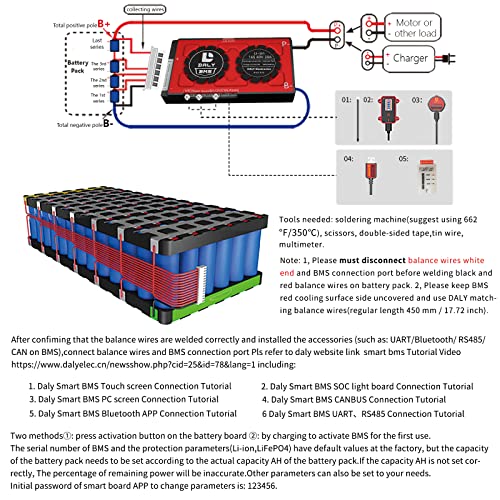 DALY BMS: Il BMS è stato prodotto da Mos e IC di alta qualità. Mantieni la durata del ciclo lungo della batteria. Basso consumo energetico estremo. Il consumo di tutto il dispositivo è inferiore a 50uA.PCB utilizza alta resistenza all'acqua anticorrosiva e alta, rivestimento conforme ESD ad alta impedenza.