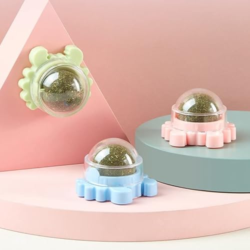 2. Ruotabile a 360°: design autoadesivo, ogni pallina commestibile non è fissa, può essere ruotata su e giù, il che è comodo per i gatti da giocare e leccare, viene fornita con una copertura trasparente, quando non è in uso, questa lettiera per gatti impedisce alla polvere di cadere e lo mantiene pulito, così questo gatto lo leccherà la prossima volta.