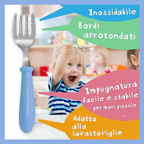 Posate di alta qualità: il set di posate per bambini e bambini con scatola robusta entusiasma visivamente grandi e piccoli e, grazie al suo manico rotondo, è perfetto anche per le mani piccole.