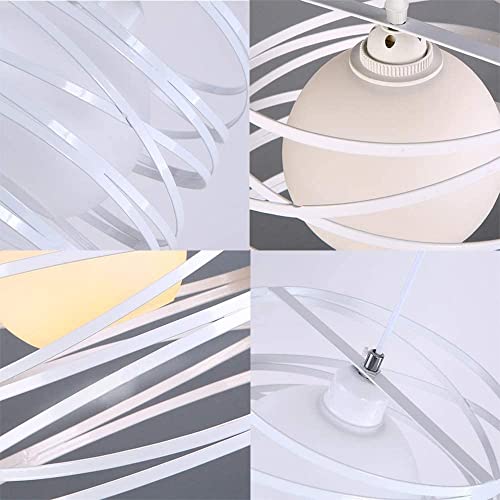 Damastoreitalia Lampadario da soffitto a sospensione con attacco E27 (lampadina non inclusa) moderno con paralume traforato (Bianco a fasce)