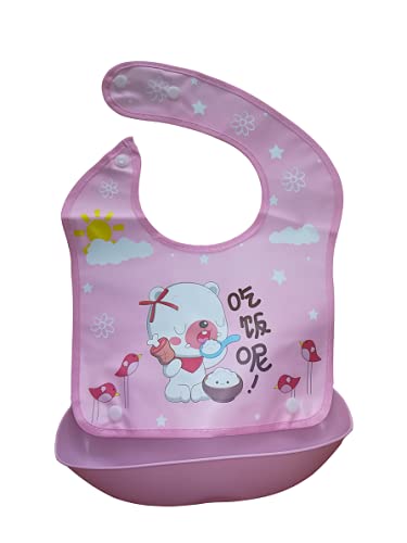 Dambrofil Bavaglini Peva e Cottone Impermeabili Con Tasca Raccoglipappa Estraibile Regolabile (Rosa)