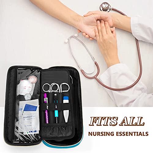 ALTA CAPACITÀ: lo scomparto con anelli elastici tiene lo stetoscopio in un posto, impedendogli di rimbalzare. Fessura elastica per luce penna, penne, martello reflex. Tasche extra per riporre gli altri accessori dell'infermiera, come forbici per bende, misuratore di pressione sanguigna, badge identificativi, diapason o polsini per la pressione sanguigna, ecc.