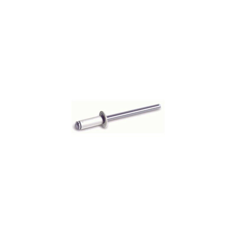 Rivetti in alluminio. - Dimensioni: 4,8 x 8 mm. - Forma: Testa stelo in alluminio. - Bianco. - Scatola da 500 unità.