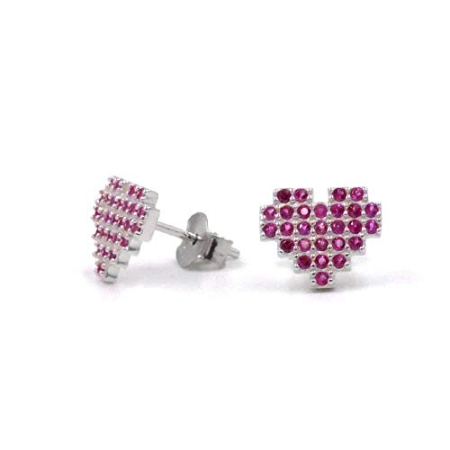 Damiano Argenti Orecchini Pixel Cuore in Argento Sterling 925 e Zirconi Rosa Argento