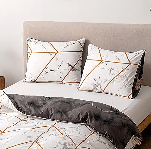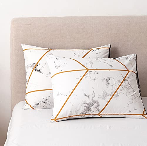 Damier Federa per cuscino in marmo, 40 x 80 cm, colore bianco grigio e oro, moderna, motivo geometrico, confezione doppia, morbida microfibra marmo, federa per cuscino
