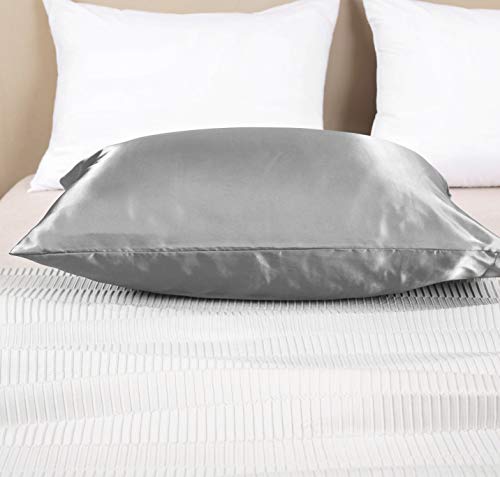 Damier Federa per cuscino in raso, 40 x 80 cm, grigio seta, lucida, con busta, di lusso, per capelli e pelle, confezione da 2