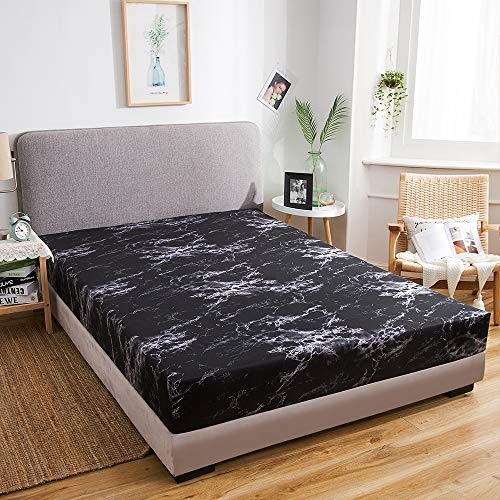 Damier Lenzuolo con angoli in marmo, 140 x 200 cm, nero e bianco, motivo marmo, in morbida microfibra, adatto per materassi di 30 cm