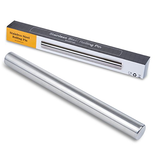 DAMIGRAM Mattarello In Acciaio Inossidabile Antiaderente Mattarello In Acciaio Impasto Perfetto Per La Preparazione Di Pane Torte Biscotti Pasta Fresca Pasta Sfoglia - 40CM