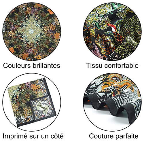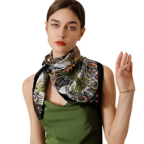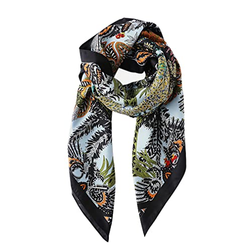 DAMILY Sciarpa da donna Bandana con motivo colorato foglia di seta amare grande quadrato raso sciarpa testa 90 x 90 cm, Nero, Large