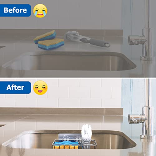 Porta sponde per lavello della cucina: il contenitore per lavello della cucina può essere utilizzato per adattarsi a 1 spugna e 1 pennello, che mantiene il lavello della cucina ben organizzato.