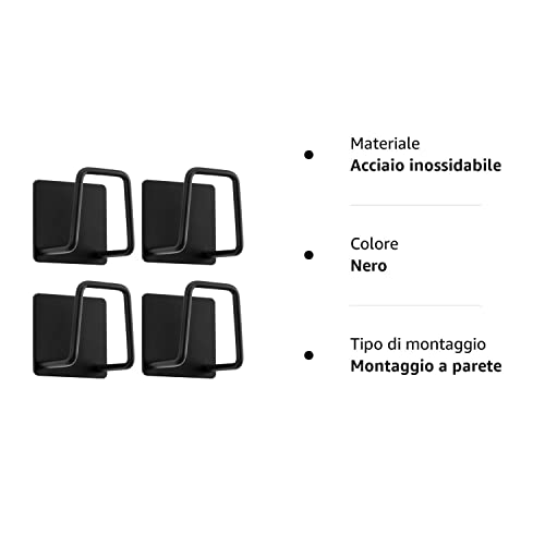 Damita Portaspugna Porta spugnetta in acciaio inossidabile 304, autoadesivo - Pratico accessorio per lavello - Gancio adesivo, organizer, organizzazione in cucina e bagno (4 pezzi, Nero)