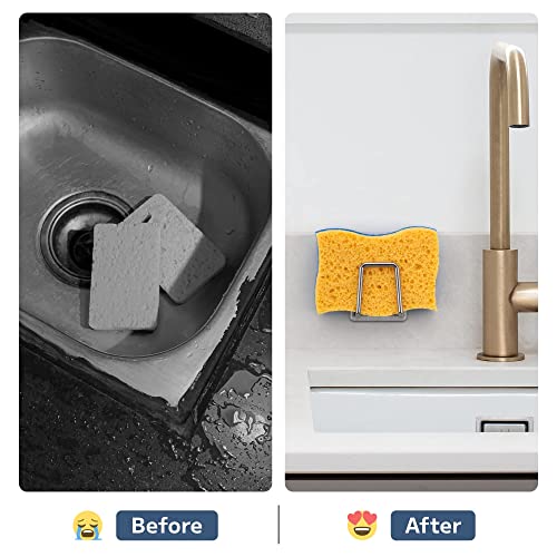 Costruzione Robusta: Questi organizer per il lavandino sono realizzati in acciaio inossidabile 304 antiruggine e antiumidità. I margini arrotondati prevengono danni alla spugna e alle tue mani.