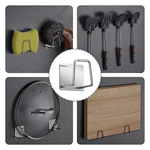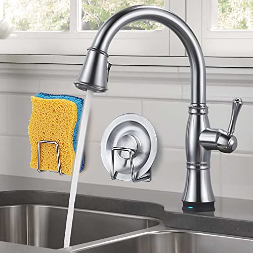 Damita Portaspugna Porta spugnetta in acciaio inossidabile 304, autoadesivo - Pratico accessorio per lavello - Gancio adesivo, organizer, organizzazione in cucina e bagno (2 pezzi, argento)