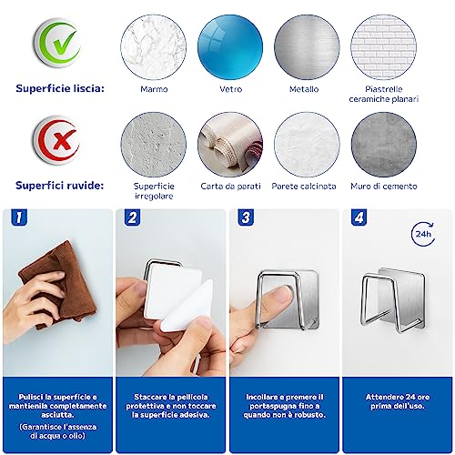 Set pratico: è raro che una spugna sia da sola. E' per questo che offriamo i nostri ganci, che possono essere usati anche per altri utensili da cucina e per il bagno, in un pratico set da 2 o 4.