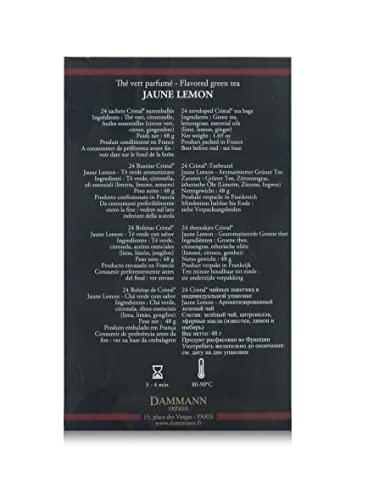 Dammann Jaune Lemon - Tè verde Sencha della Cina, citronella, oli essenziali di lime e limone dolce, con zenzero, 24 filtri, Dammann Frères