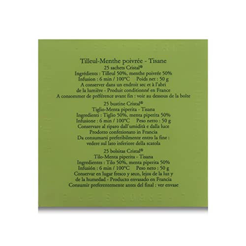 Dammann Tilleul Menthe - Tisana al tiglio e menta, 25 filtri Cristal, 50g, Dammann Frères