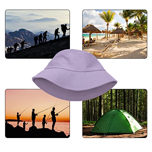 DAMOCHI Cappello a Secchiello Pescatore Reversibile Pieghevole a Doppia Faccia in Cotone Uomo Donna Unisex All'aperto Cappello da Spiaggia per Escursioni in Campeggio (Lilla)