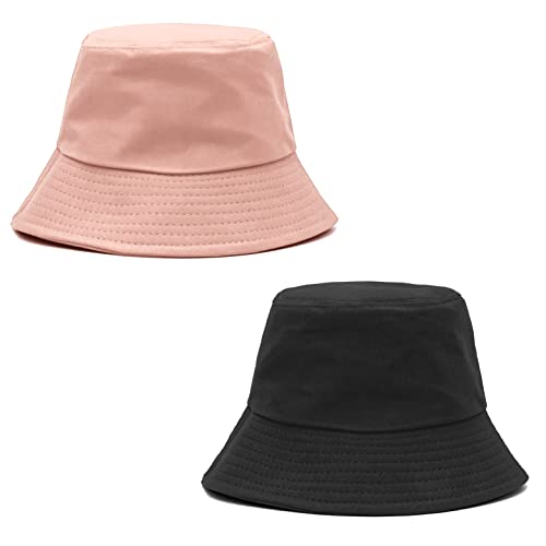 DAMOCHI Cappello a Secchiello Pescatore Reversibile Pieghevole a Doppia Faccia in Cotone Uomo Donna Unisex All'aperto Cappello da Spiaggia per Escursioni in Campeggio (ROSA/NERO-2PCS)