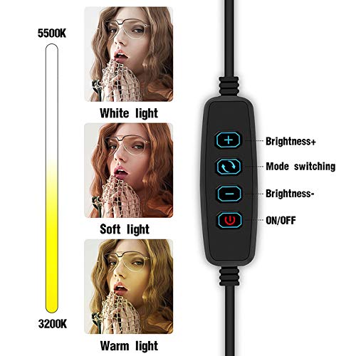 ❤ 【REGOLAZIONE】 Modalità di illuminazione a 3 colori: bianco, giallo caldo e bianco caldo. Ogni modalità di illuminazione ha 10 luminosità regolabili, può soddisfare le tue diverse esigenze. Perfetto per video live, luce di riempimento selfie, tutorial sul trucco, ecc.