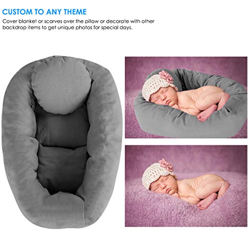 Accessori completi per foto del bambino: questo set include un cuscino rotondo e 3 piccoli cuscini aggiuntivi completano la ciambella fotografica di base per ottenere varie adorabili pose per neonati ma mantenere il bambino confortevole.