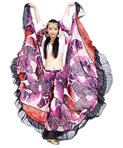 Dance Fairy Tribal Gypsy 25 Yards 720 Gradi del Ventre Donne Rosso Danza Maxi Chiffon Lungo Gonna(Rose)