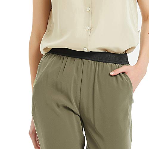 New Dance Pantaloni Lunghi da Donna, in Seta, 19 mm, in Vita, Elasticizzati, Pantaloni Casual e Slim con Tasche, Verde, 40