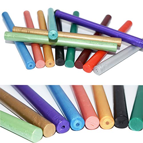 Dancepandas Bastoncini di Ceralacca 12PCS Ceralacca Sigillo Stick di Cera Sealing Wax con 2 Cucchiaio per Fusione Timbro Busta Invito Artigianato DIY Tools (12 Colori)