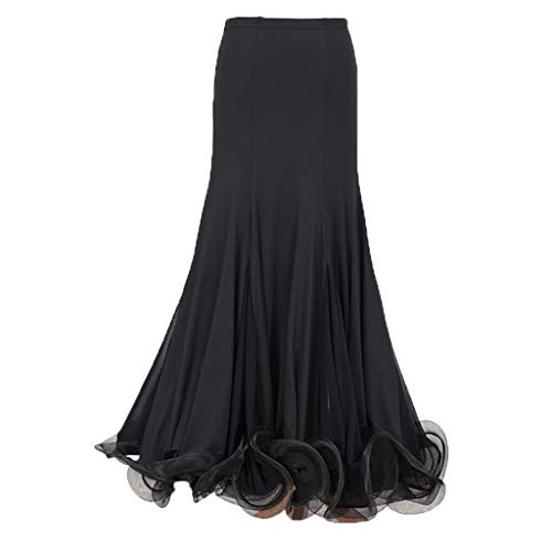 DANCER Gonna di Danza Moderna A Mezza Lunghezza con Arricciatura A Punta di Pesce,Gonna da Ballo Standard Nazionale da Ballo (Color: Black, Size: S)
