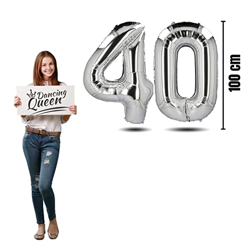 Dancing Queen palloncini 40 anni compleanno uomo, donna Palloncino numero 40 come palloncini gonfiabili come decorazione, ideale per anniversario e festa di compleanno palloncino argento 40 anni 100cm