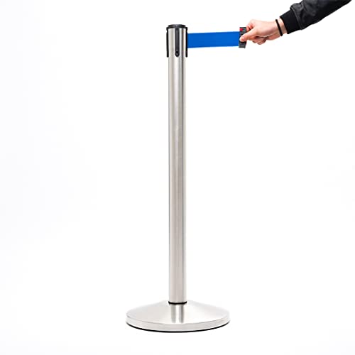Danieli | Colonnine Segnapercorso con Nastro Separatore Estensibile fino a 3 metri con Sistema Auto-Frenante. Asta Delimita Corsia in Acciaio Spazzolato con Base Rinforzata (Blu)