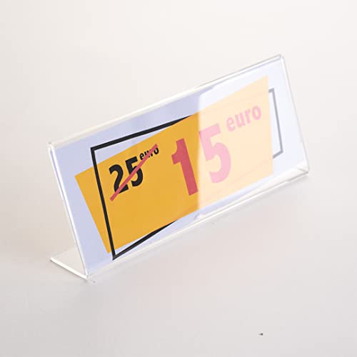 ✅ Pratico Porta Etichette Trasparente da Utilizzare come Espositore Prezzi o Portanome da Tavolo. In Acrilico ad Alta Trasparenza, con inserimento laterale del foglio.