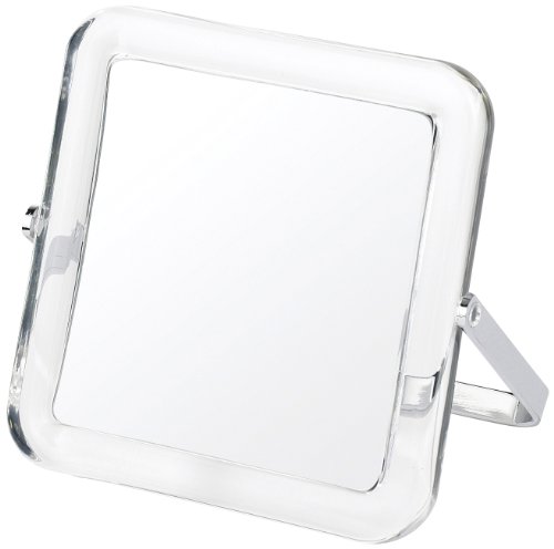 Danielle - Specchio cosmetico ingranditore bifacciale, lato normale e lato con ingrandimento 5x, quadrato, con piedistallo, in acrilico trasparente, 16 cm