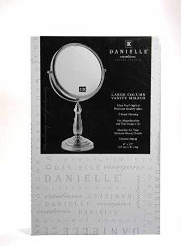 Danielle - Specchio cosmetico ingranditore bifacciale, lato normale e lato con ingrandimento 10x, con piedistallo, finitura cromata, 23 cm